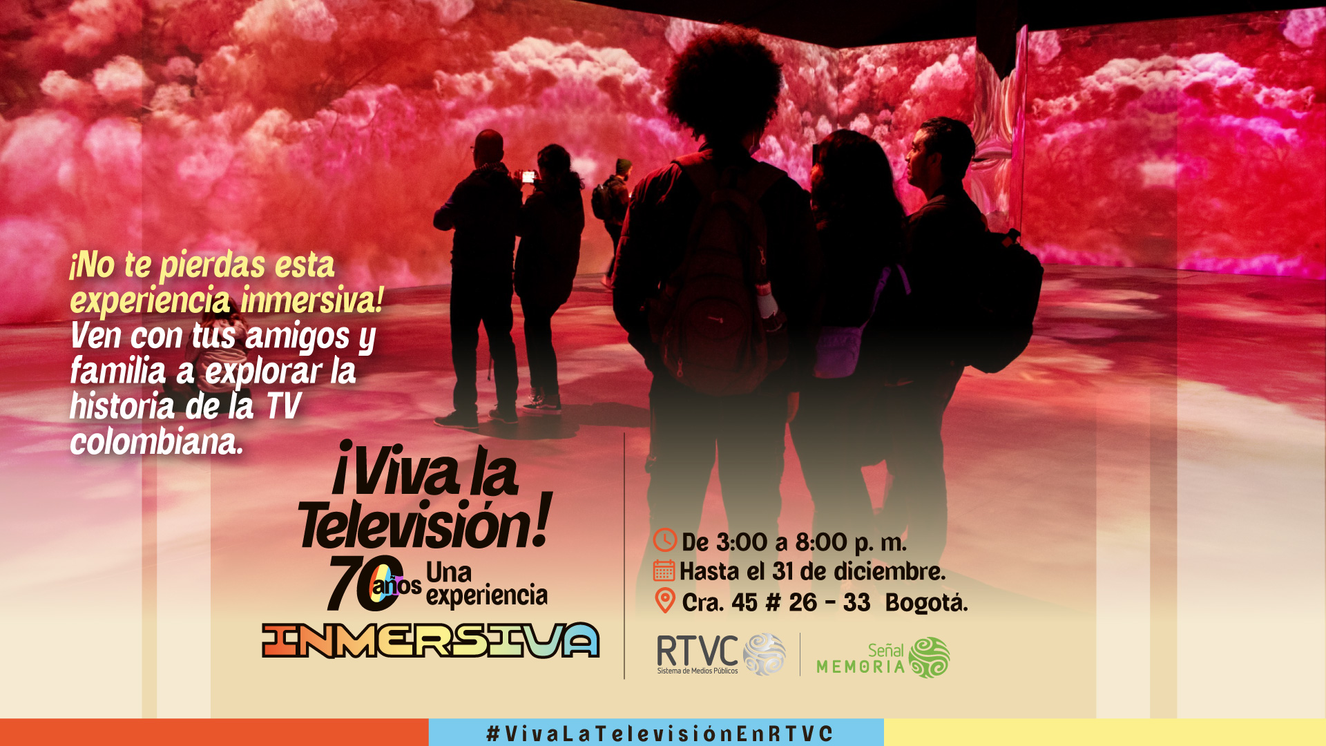 Imagina adentrarte en un túnel de luces que atraviesa el tiempo, trayendo consigo los ecos de programas legendarios y las voces que marcaron el alma de generaciones. Así es ¡Viva la Televisión!, una experiencia multisensorial que RTVC ofrece a los colombianos, un recorrido único donde la memoria de la televisión y la radio colombiana cobra vida, desbordando los sentidos con cada paso.