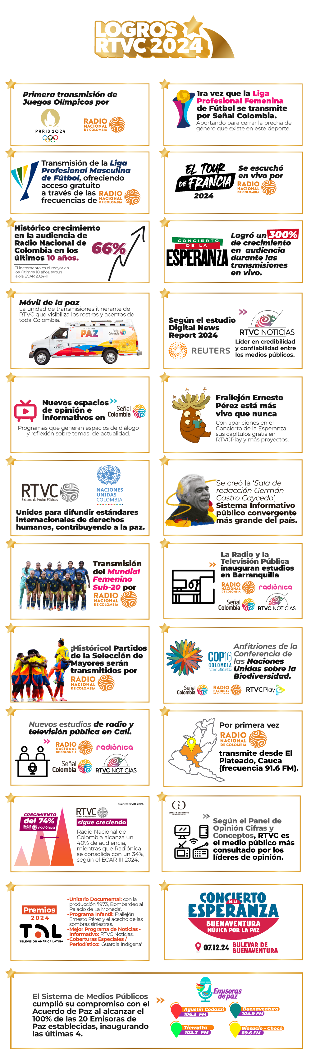 A lo largo del recorrido, los recuerdos se despiertan en una danza luminosa, reviviendo programas y momentos icónicos que dejaron huella en generaciones enteras. Podrás revivir la autenticidad de “Animalandia”, la intriga de “Betty la fea”, la emoción del 5 a 0 contra Argentina, el humor de “Don Chinche”, la profundidad de “Charlas con Pacheco”, el coraje de “Enviado especial” de Germán Castro Caycedo, y la pasión de “Los pecados de Inés de Hinojosa” con Margarita Rosa de Francisco y Amparo Grisales, entre muchos otros.