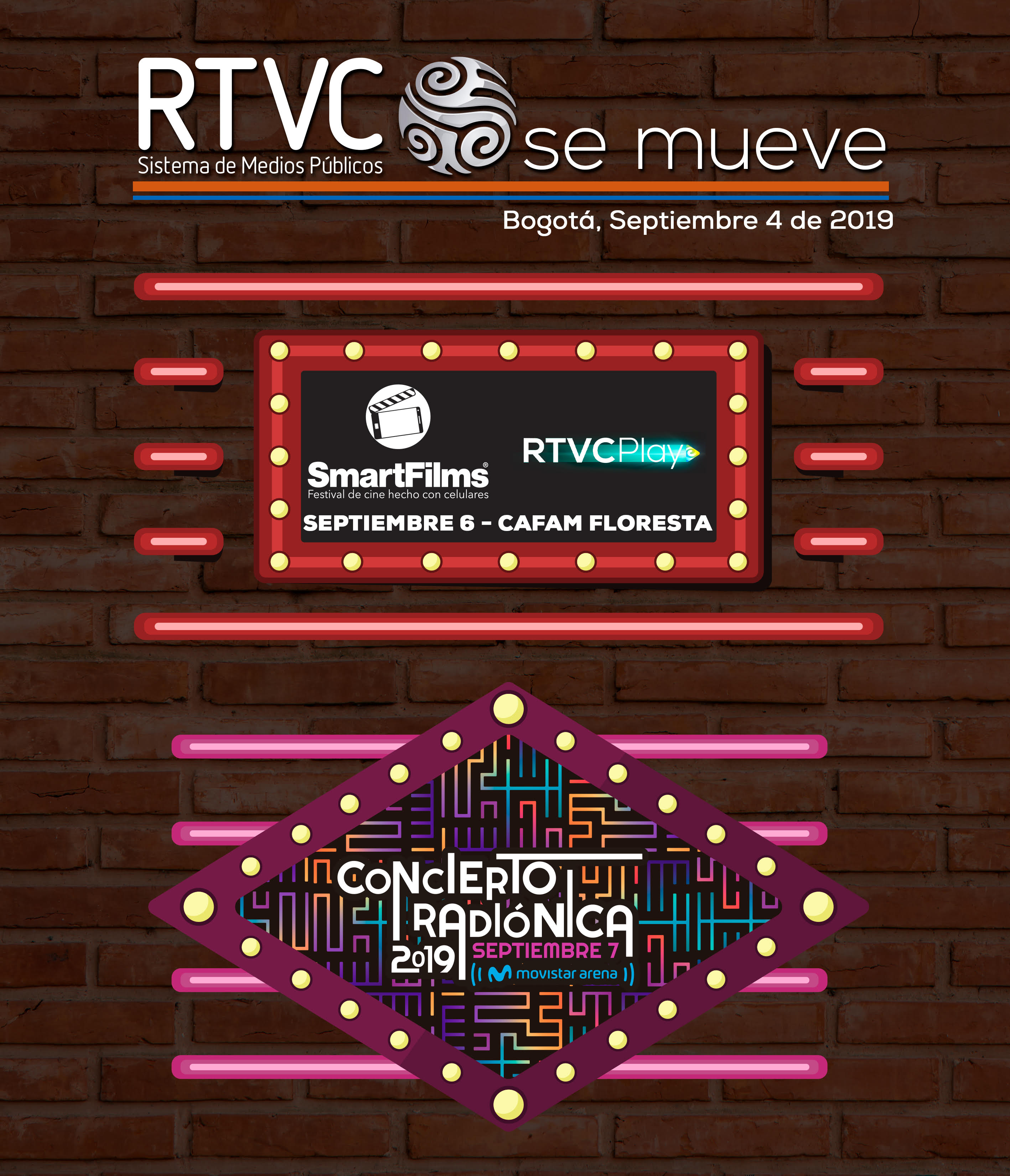 El CONCIERTO RADIÓNICA hará un giro histórico, el próximo 7 de septiembre. Luego de realizarse durante 10 años en la media torta, pasa de recibir a 7 mil almas, a ser la fiesta de 12 mil espectadores en su nueva casa; el MOVISTAR ARENA. Por esta razón, RTVC Sistema de Medios Públicos, entra en sinergia con sus marcas, para llevar a cabo un cubrimiento 360 del evento.