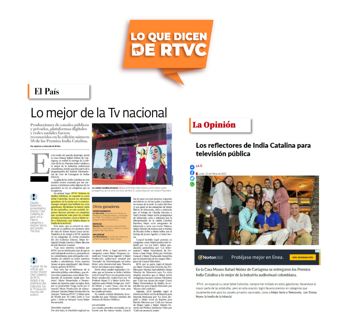 Ellos son parte clave del reconocimiento que este año alcanzó RTVC, que con las 11 estatuillas se convirtió en el medio más premiado de los India Catalina.