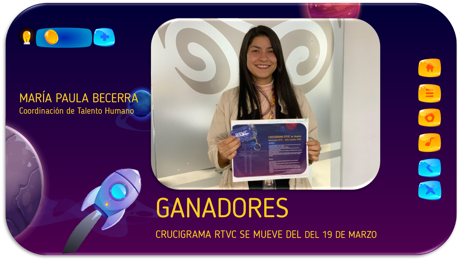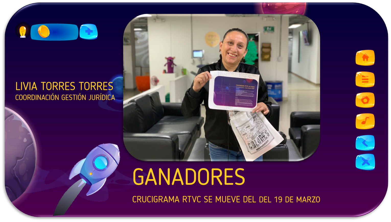 Gerente RTVC: Álvaro García Jiménez. Coordinador de Gestión de Comunicaciones: Julián García Wren. Comunicaciones internas: Aura María Castellanos - Nicolás Espinel - Jimena Cortés. Comunicaciones externas: Juan Pablo García - Sandra Preciado. Área digital: Viviana Rubiano - Daniel Escobar. Estrategias y Proyectos Área de Comunicaciones: María Doris Cuello. Diseño y montaje: Freddy Alexánder Vásquez - Aura María Castellanos. Fotógrafo: Sandro Boris Sánchez. Equipo audiovisual: Silvana Gómez. Encargado de visitas guiadas: Éder Nicolás Araújo.