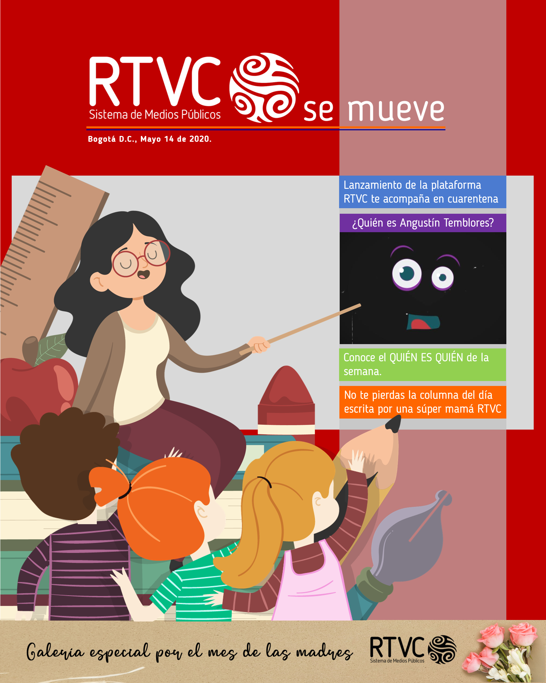En RTVC hacemos un homenaje a los maestros, hombre y mujeres que con vocación y convicción prestan un servicio invaluable de formación a niños y jóvenes en medio de las dificultades de hoy en día, pero que encuentran en la casa de los medios públicos una alternativa para continuar con su loable labor.