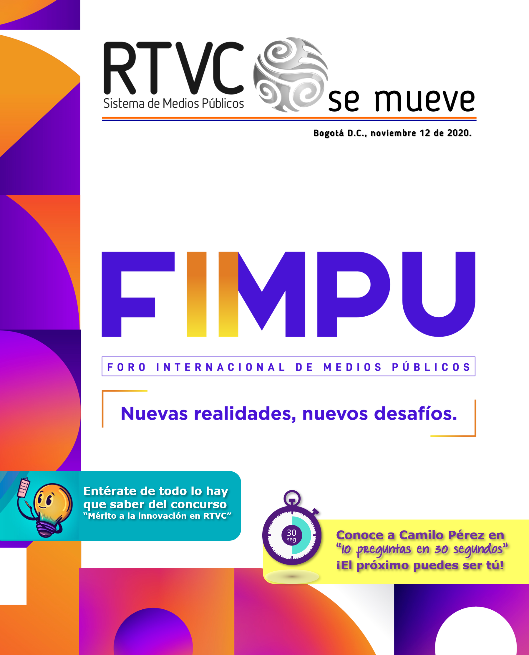 FIMPU llega a su segunda edición, pero esta vez de manera virtual, organizado por RTVC y con el apoyo del MinTIC, el próximo 26 de noviembre, bajo el tema central “Nueva realidad, nuevos desafíos”.