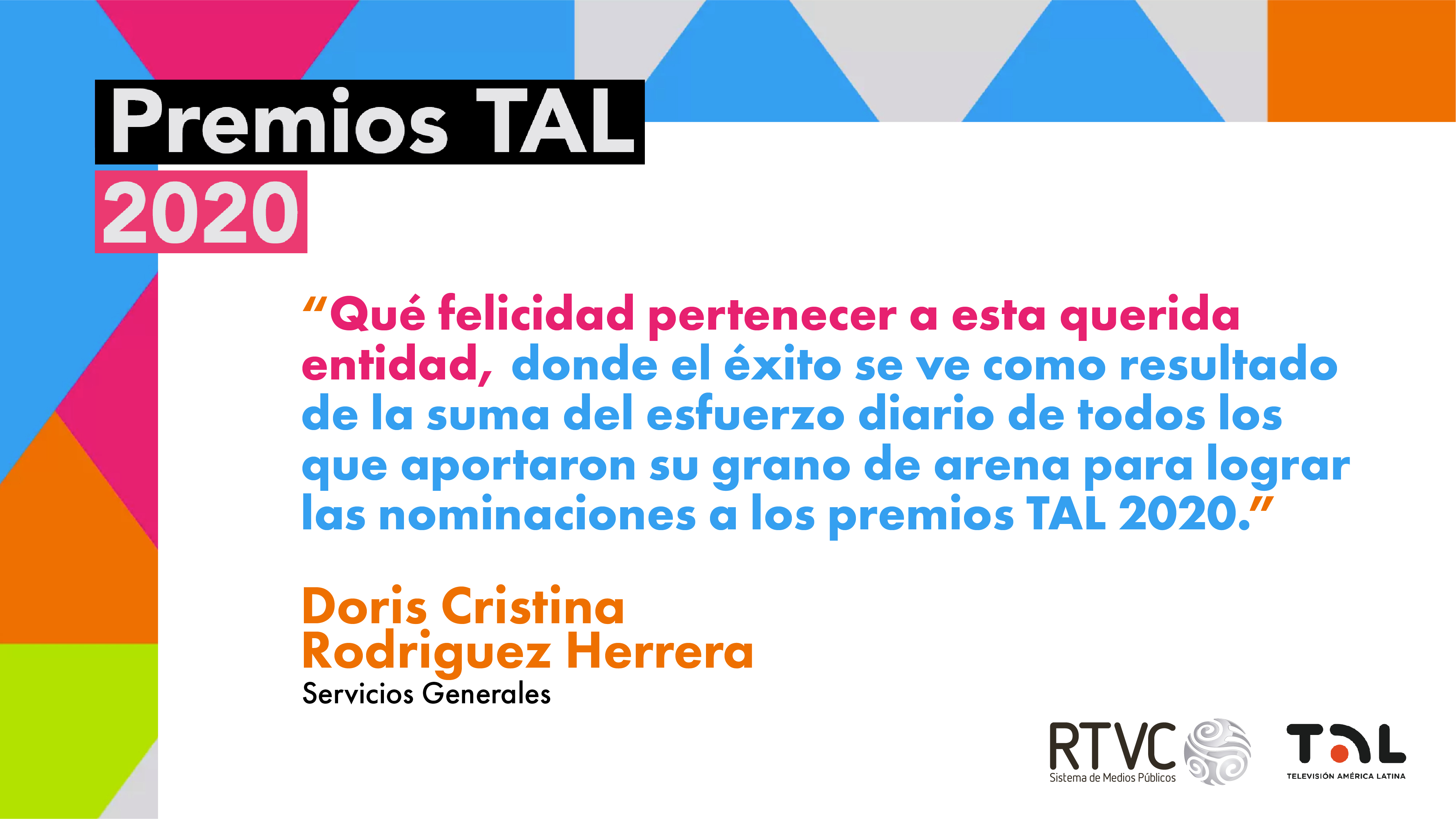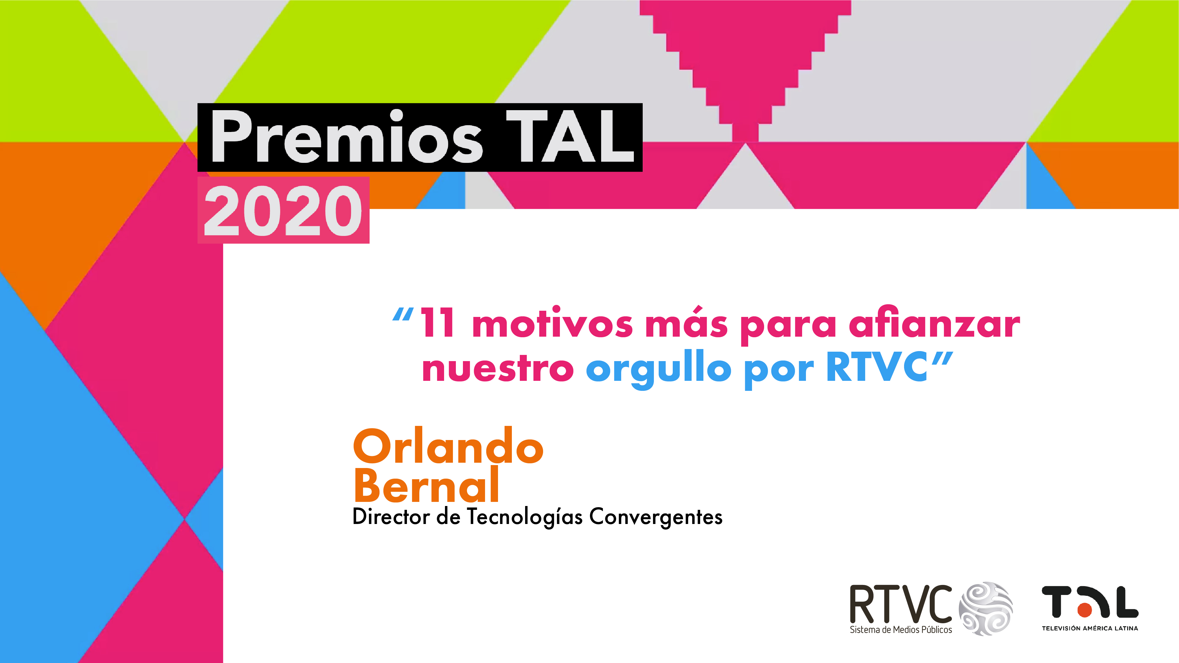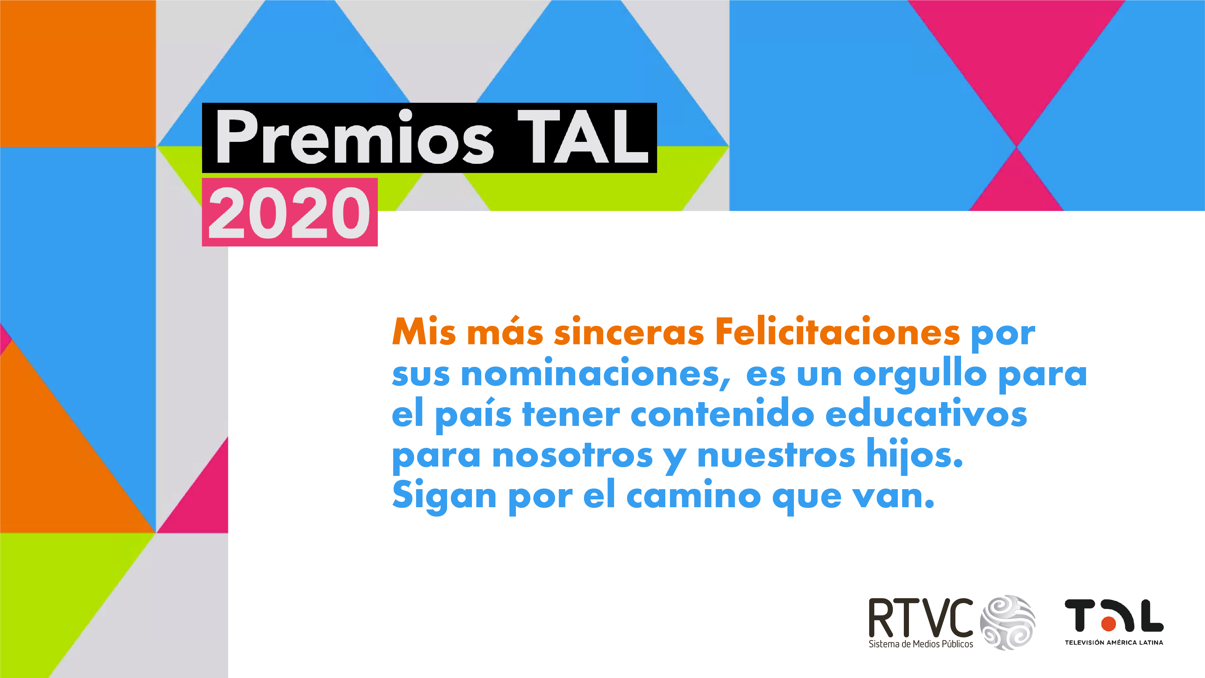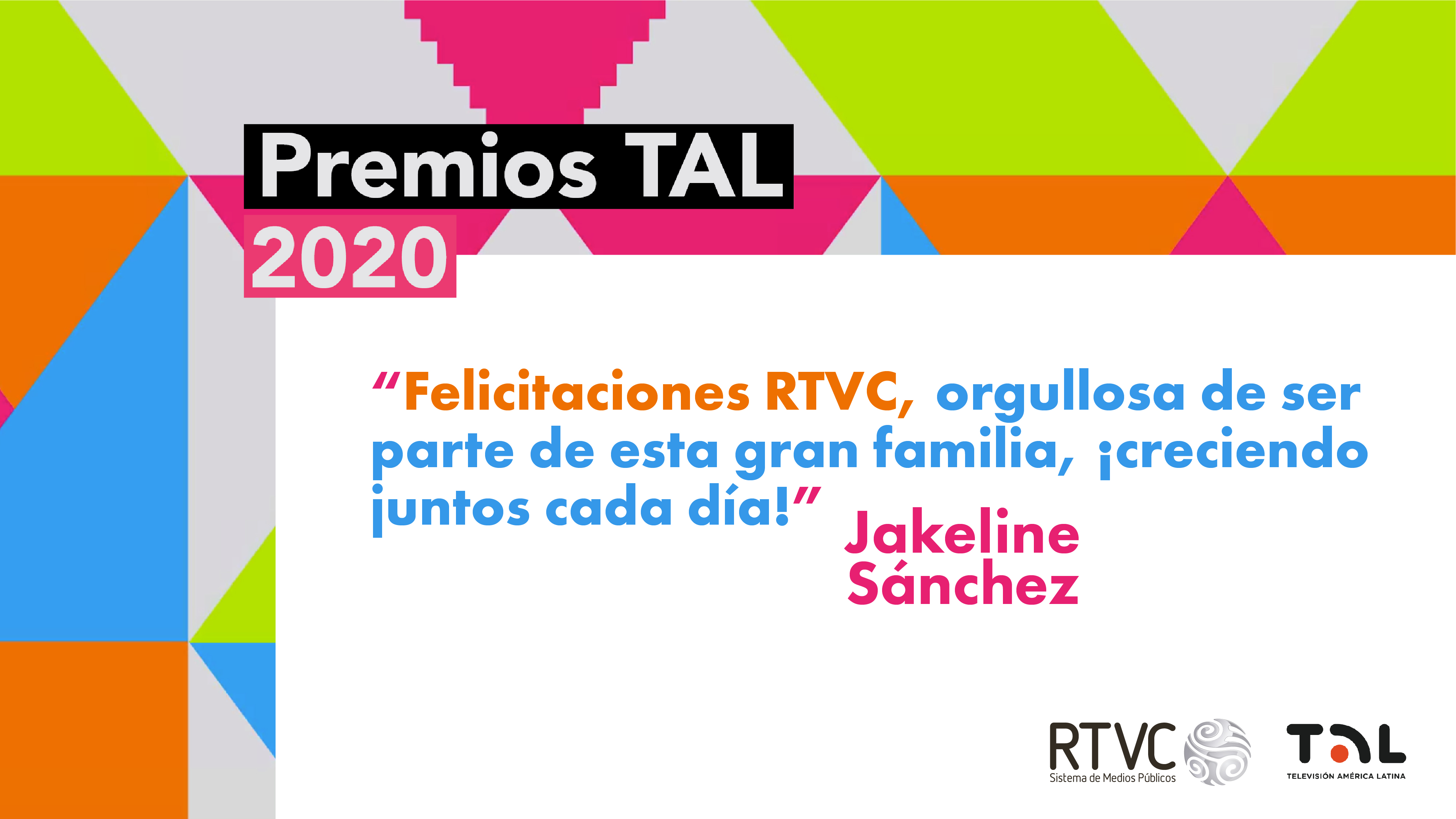 En RTVC nos sentimos orgullosos por las 11 nominaciones que hemos recibido para los Premios TAL 2020. Llegar a este nivel de reconocimiento en los galardones que exaltan a los mejores trabajos de la televisión pública de Latinoamérica es fruto del trabajo, dedicación y profesionalismo de toda la familia del Sistema de Medios Públicos.
