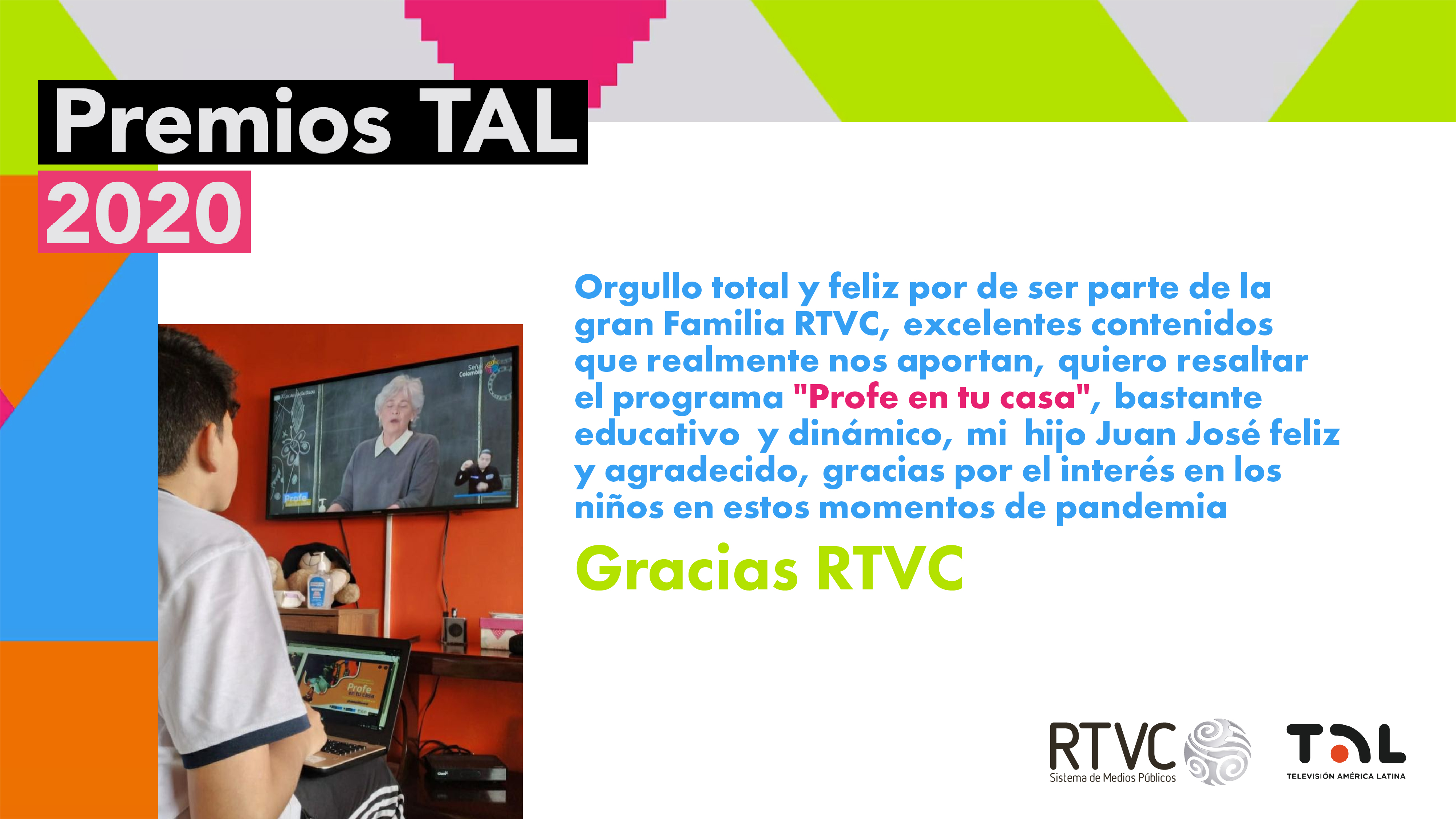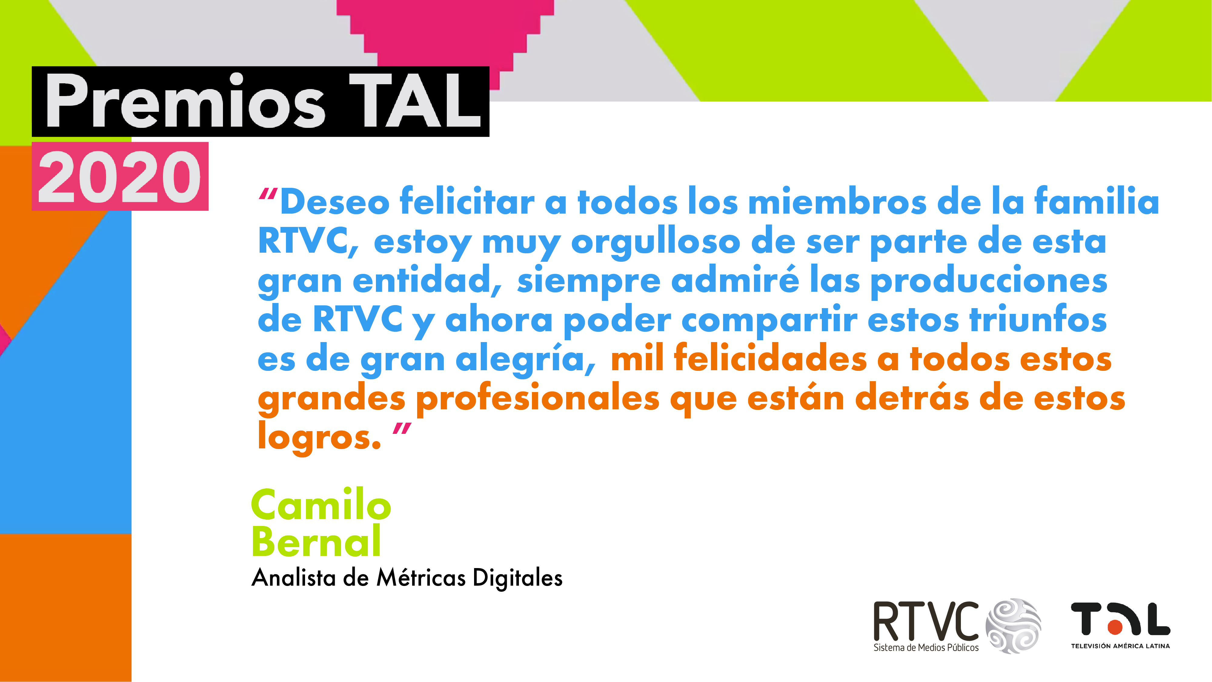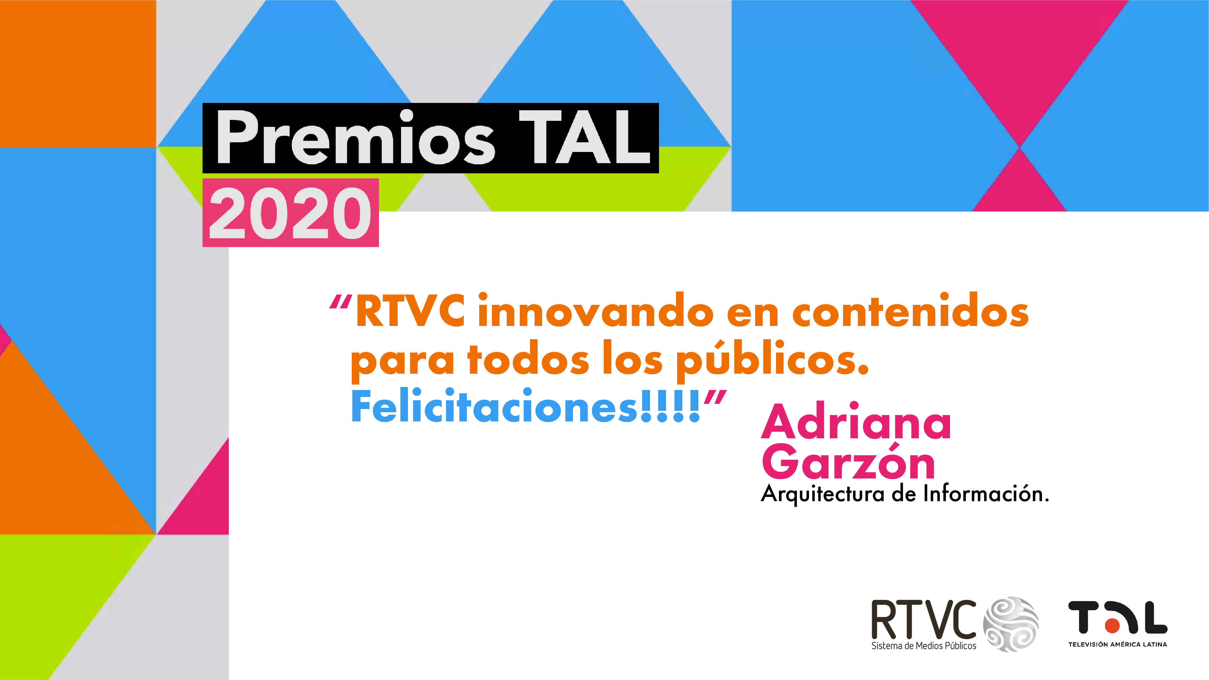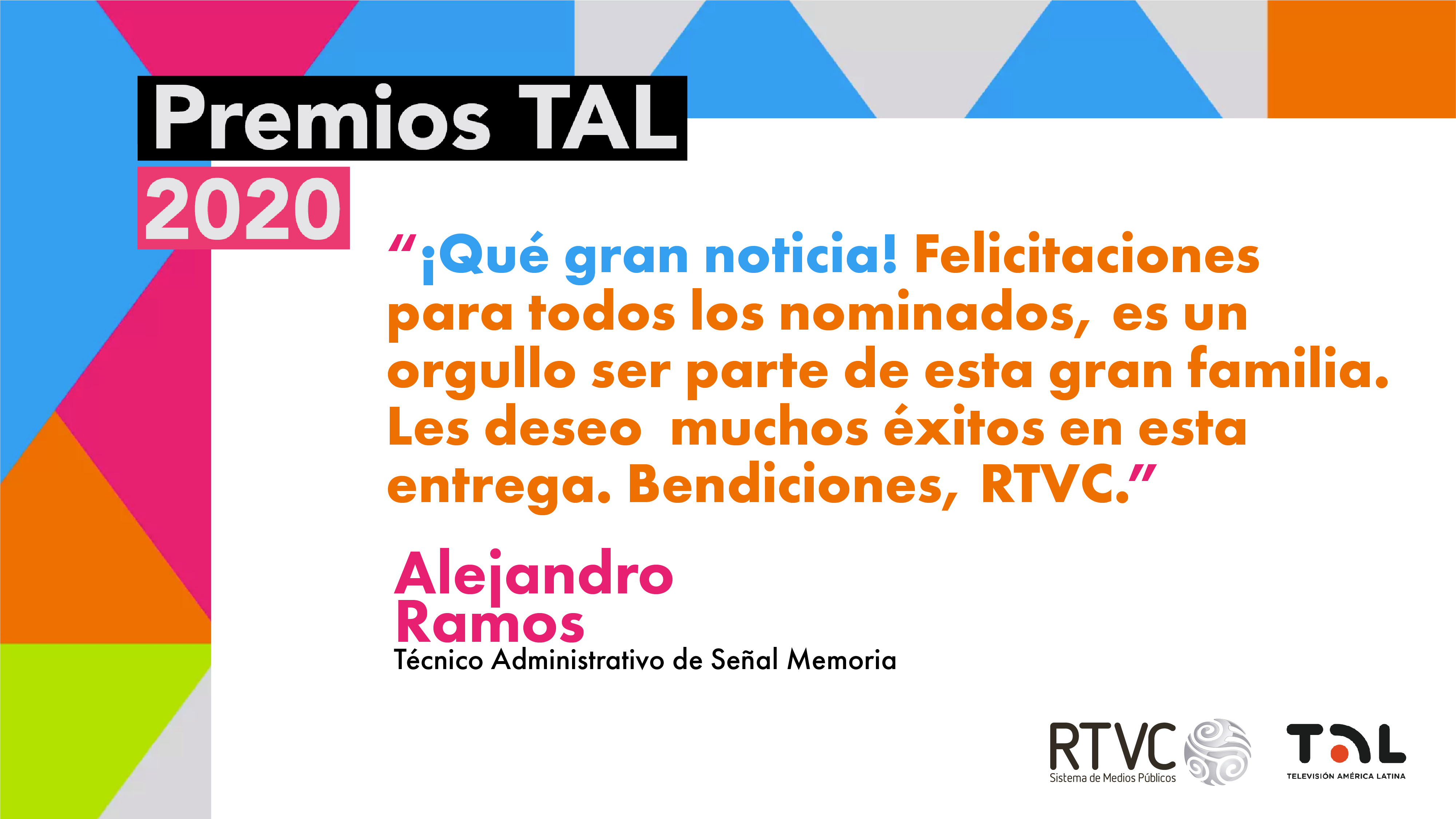 En RTVC nos sentimos orgullosos por las 11 nominaciones que hemos recibido para los Premios TAL 2020. Llegar a este nivel de reconocimiento en los galardones que exaltan a los mejores trabajos de la televisión pública de Latinoamérica es fruto del trabajo, dedicación y profesionalismo de toda la familia del Sistema de Medios Públicos.