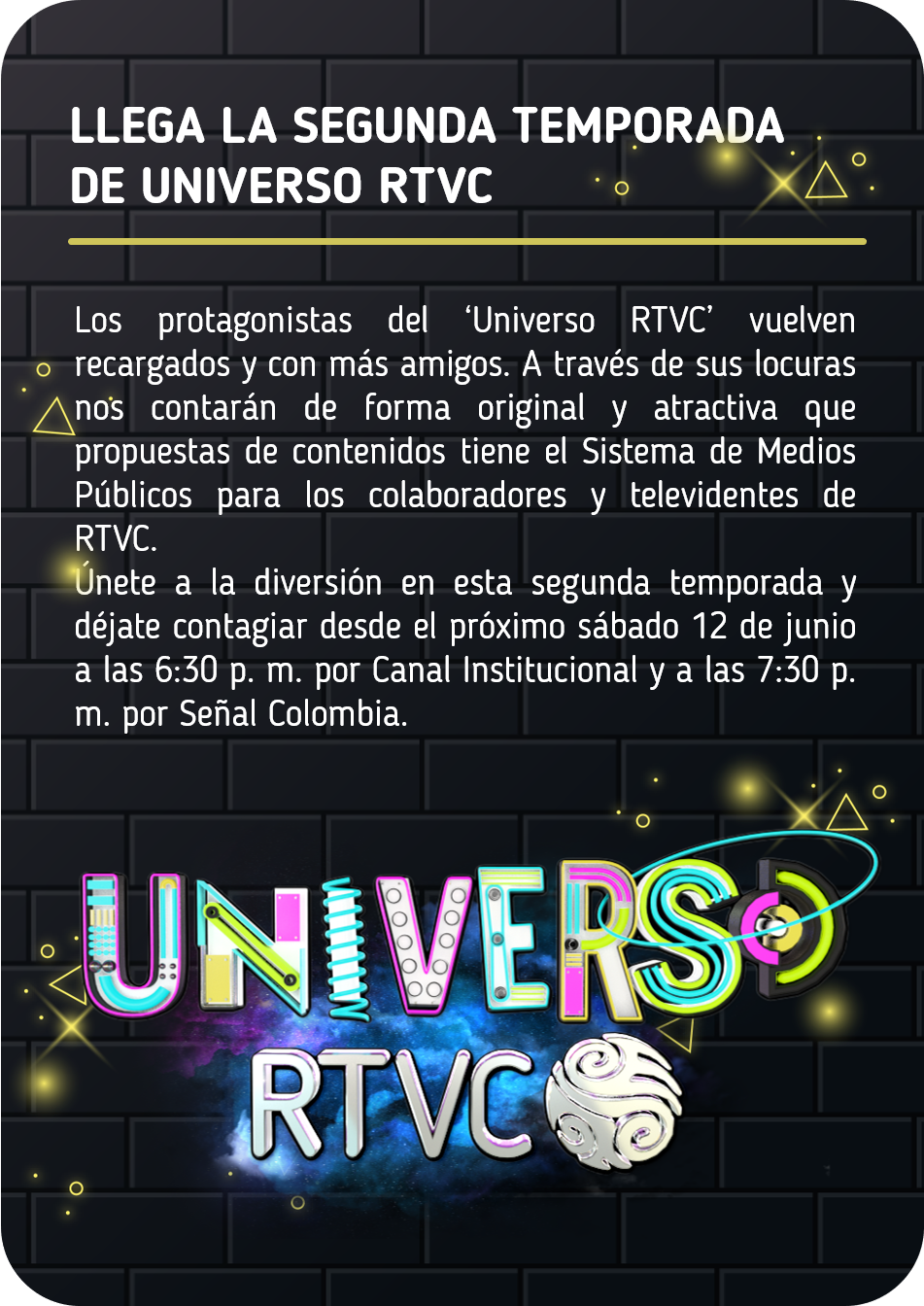 Gerente RTVC: Álvaro García Jiménez. Coordinador de Comunicaciones: Lizzeth Acosta. Comunicaciones internas: Aura María Castellanos - Nicolás Espinel Comunicaciones externas: Juan Pablo García - Sandra Preciado - Viviana Rubiano - Jimena Cortés - Éder Nicolás Araújo. Área digital: Daniel Escobar - Stephany Echavarría - María Paula Garzón. Estrategias y Proyectos Área de Comunicaciones: María Doris Cuello. Diseño y montaje: Aura María Castellanos - Freddy Alexánder Vásquez. Fotógrafo: Sandro Boris Sánchez. Realizador Digital : Silvana Gómez. Encargado de visitas guiadas: Éder Nicolás Araújo