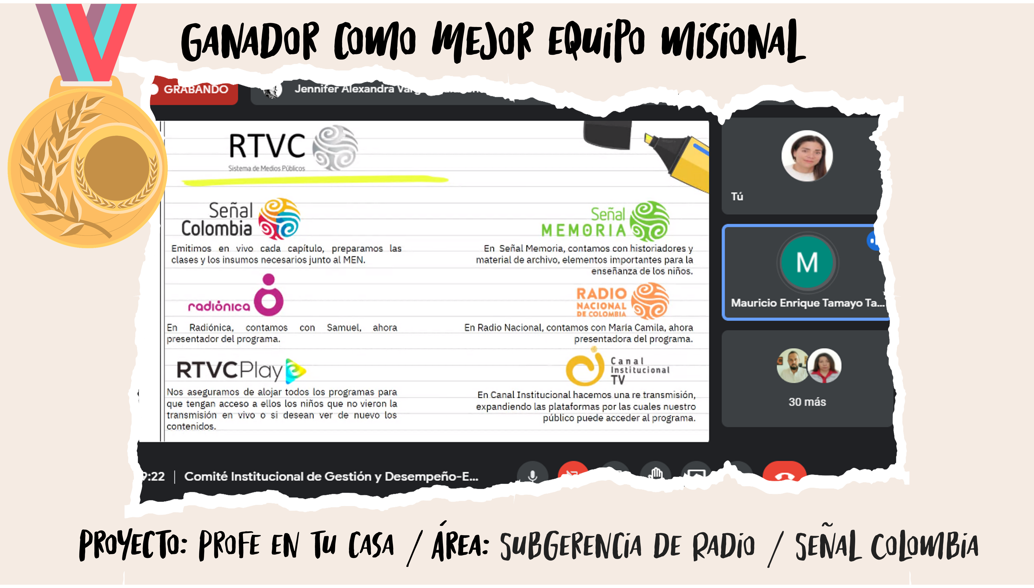 Con la participación de 9 equipos, el Plan de Incentivos y Estímulos de RTVC Sistema de Medios Públicos, otorgó especial reconocimiento a los proyectos que hicieron parte de esta actividad y que participaron bajo el esquema de ‘‘mayor compromiso con los objetivos de la empresa’’.