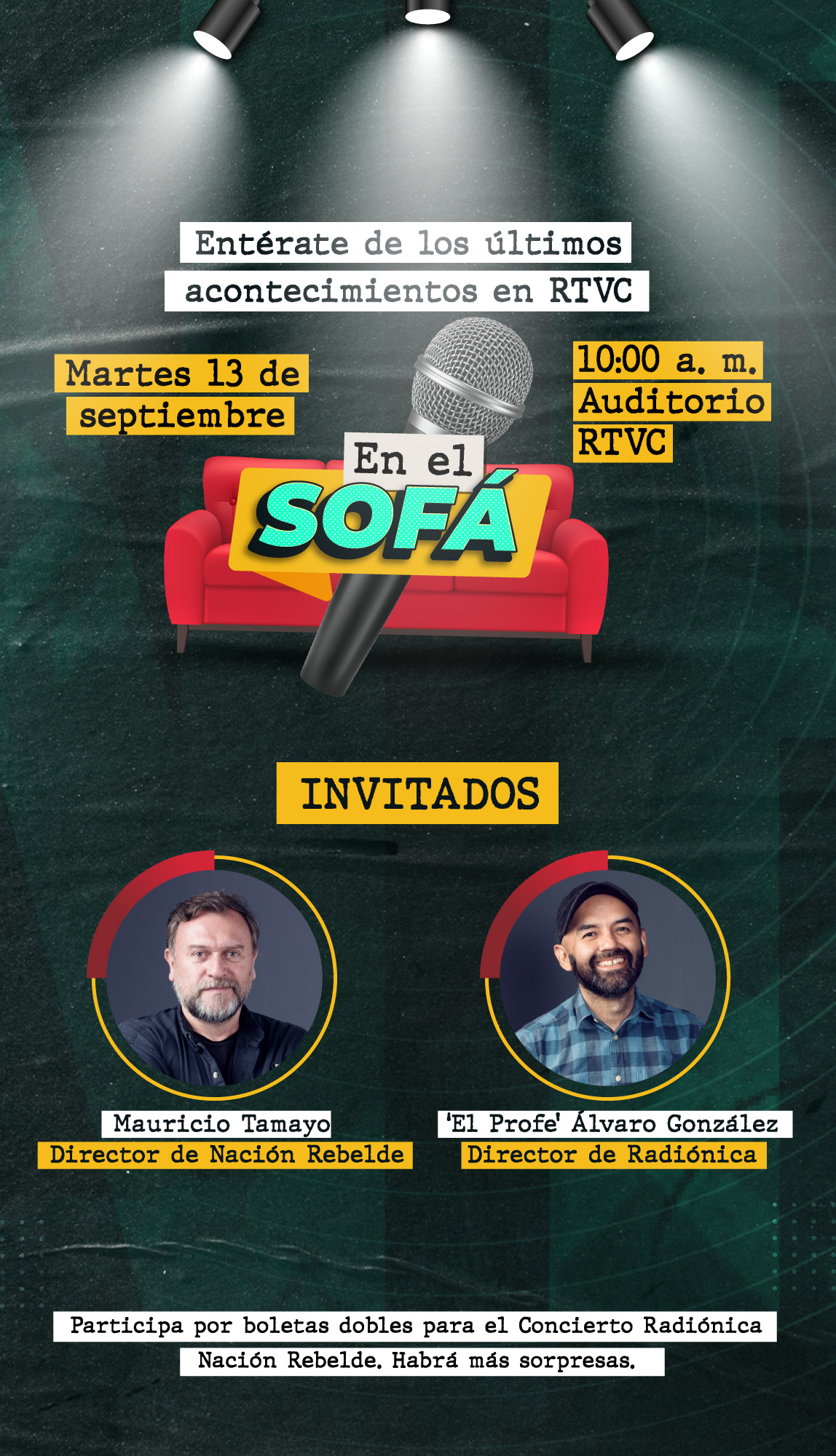 El sábado 17, desde el Teatro Jorge Eliécer Gaitán, tendremos la edición número 13 del Concierto Radiónica, que este año estará inspirado en Nación Rebelde. Recuerda que en nuestra actividad de En el sofá entregaremos algunas entradas a nuestros colaboradores.