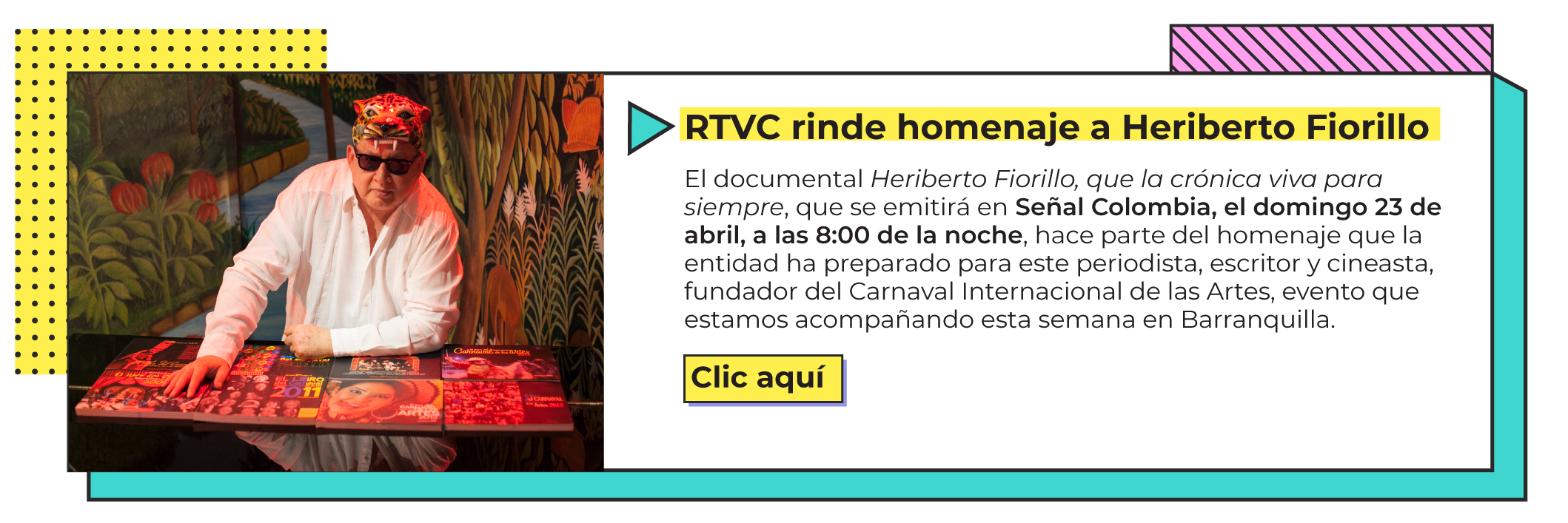 Por otro lado, les contamos que RTVC se toma Barranquilla por estos días, pues estamos participando en el XVII Festival Internacional de las Artes con una amplia agenda de charlas, proyecciones de obras restauradas por Señal Memoria y una exposición fotográfica, entre muchas otras actividades.