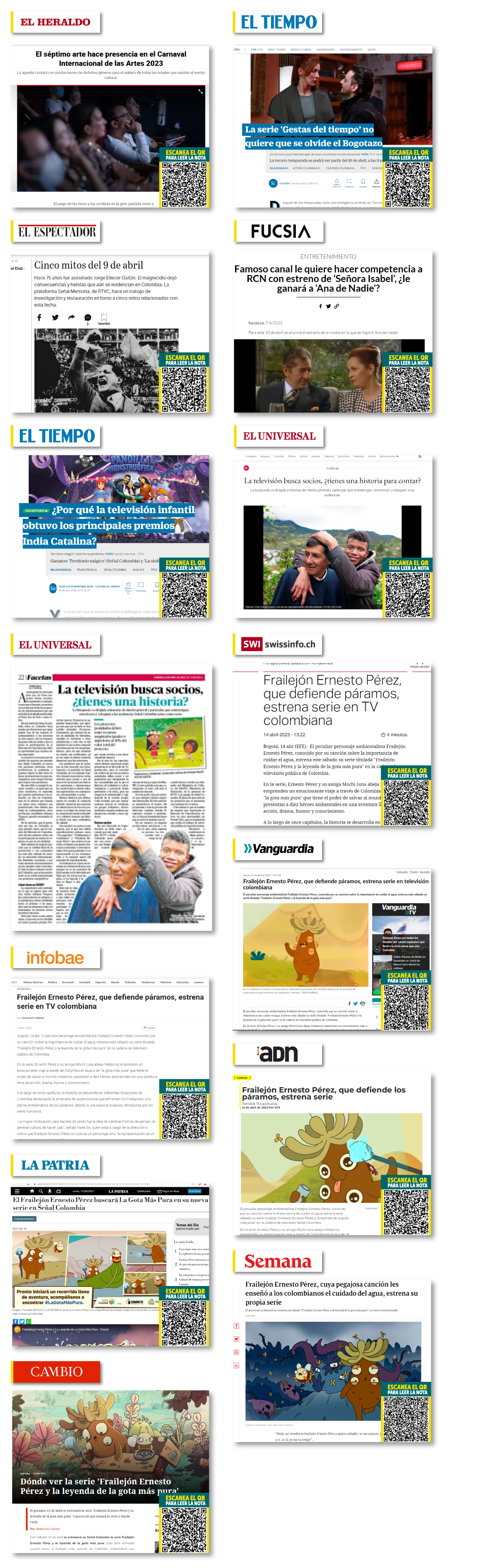En la serie Frailejón está acompañado de diez héroes ambientalistas de todo el país, entre ellos Francisco Vera, que a sus 13 años ha tenido un gran papel en la defensa de los recursos ambientales y Don Alcides Sosa que con 84 años es fundador de una reserva en el Tolima.