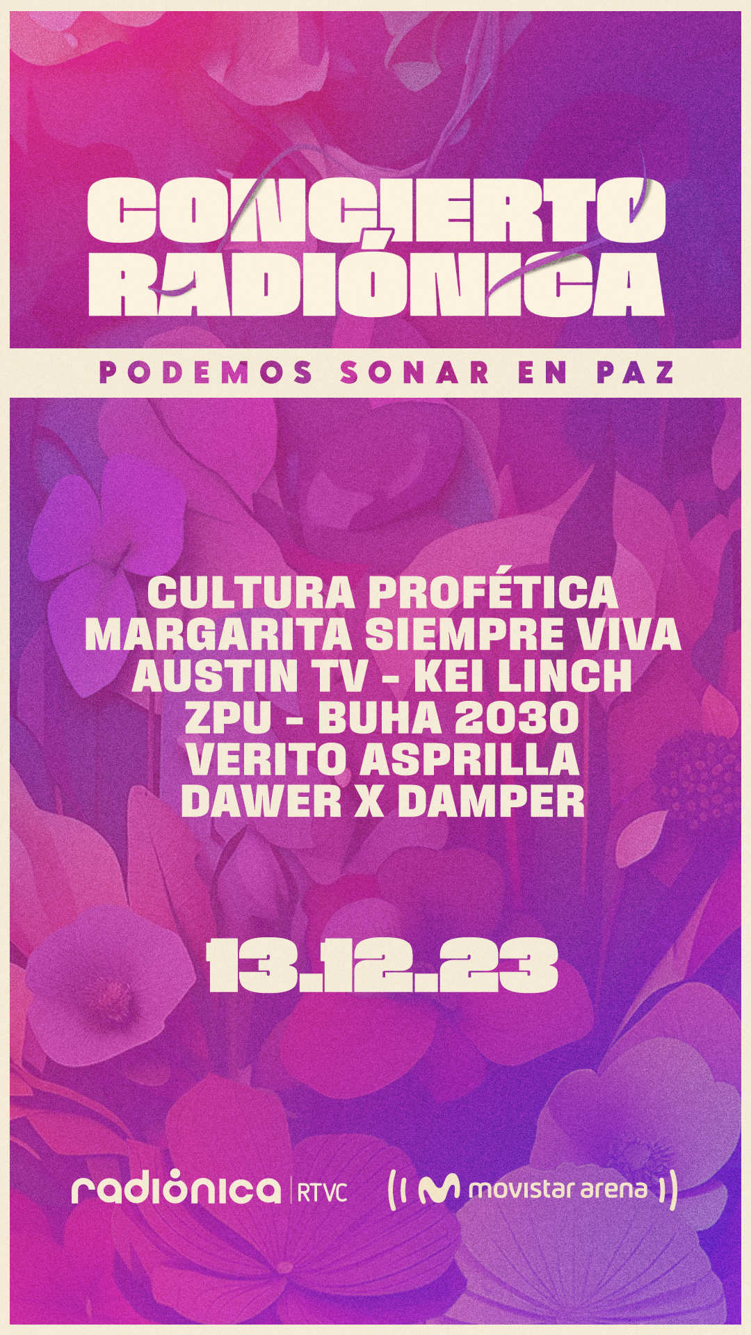 La emisora juvenil del Sistema de Medios públicos, se prepara para realizar la décimo quinta versión del Concierto Radiónica 2023, el próximo 13 de diciembre, desde las 2:00 p.m., en el Movistar Arena, bajo el lema Podemos sonar en paz.