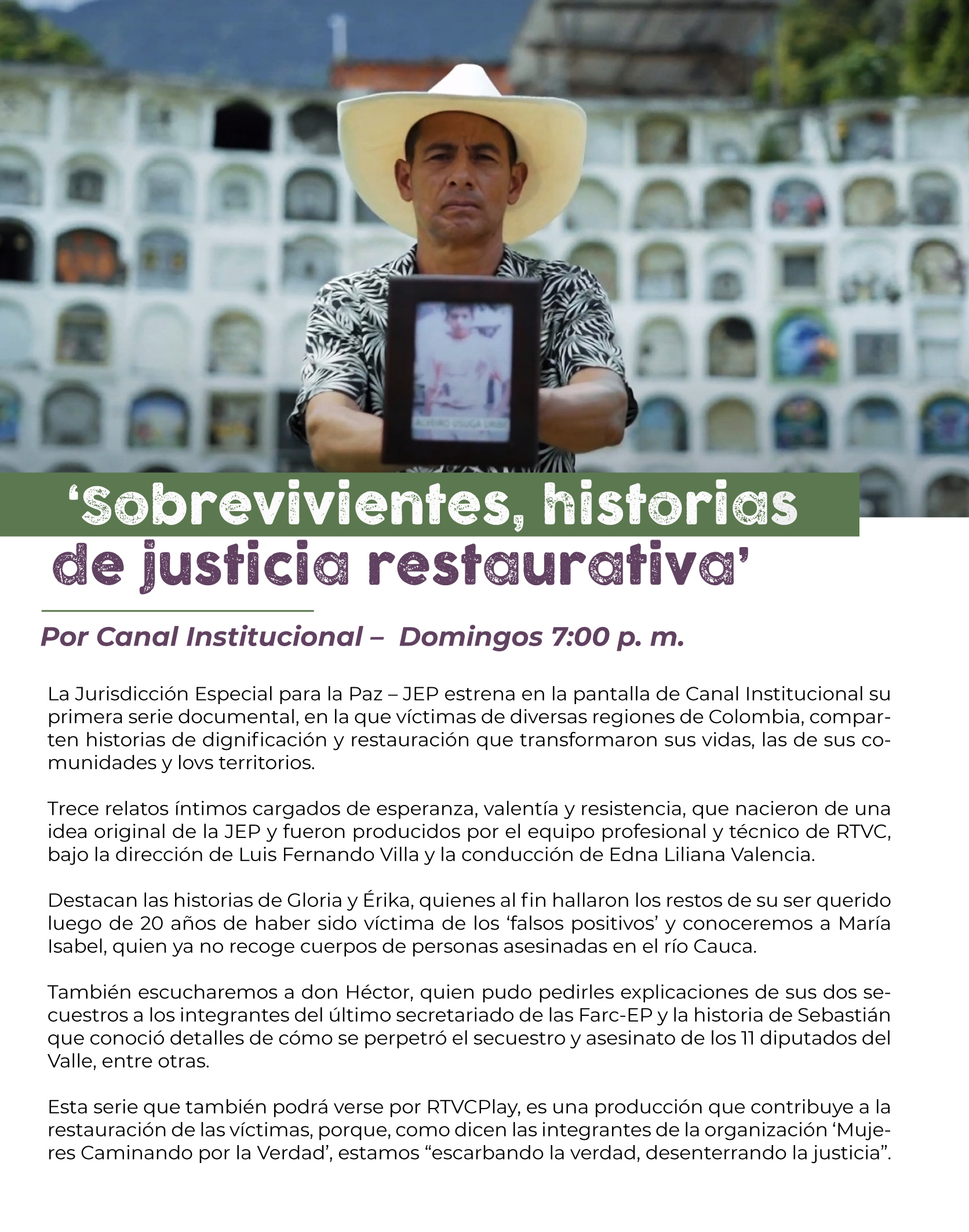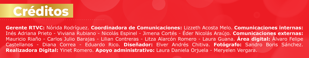 Ten siempre en cuenta que nuestra gerente Nórida Rodríguez, el subgerente de Soporte Corporativo Jorge Arzuaga, el subgerente de Televisión Hollman Morris y cada una de las personas que hacemos parte de la casa de los medios públicos, contamos con tu talento y experiencia para hacer sentir orgullosos a los colombianos por el trabajo que adelantamos en RTVC.