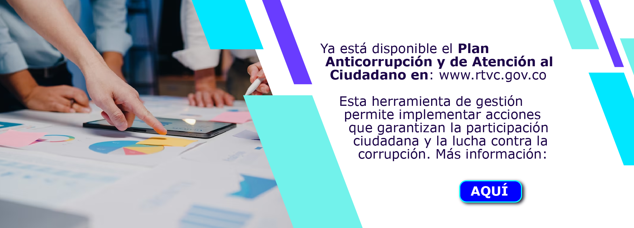 También hacen parte de RTVC las áreas de Soporte Corporativo (Contabilidad, Tesorería, Talento Humano, Relación con el Ciudadano y las Audiencias) Planeación, Jurídica, Presupuesto, Gestión Administrativa, Tecnologías de la Información y Control Disciplinario Interno; y las áreas transversales Laboratorio de Innovación y el Centro de Inteligencia y Monitoreo de Audiencias – CIMA.