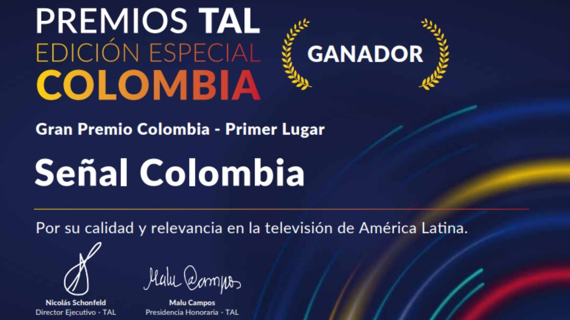 El Sistema de Medios Públicos del Estado celebra estas distinciones, y se enorgullece con el Gran Premio Colombia, ya que fue otorgado por votación del público demostrando que Señal Colombia es el canal de la gente, y los contenidos de RTVC los preferidos por el país.