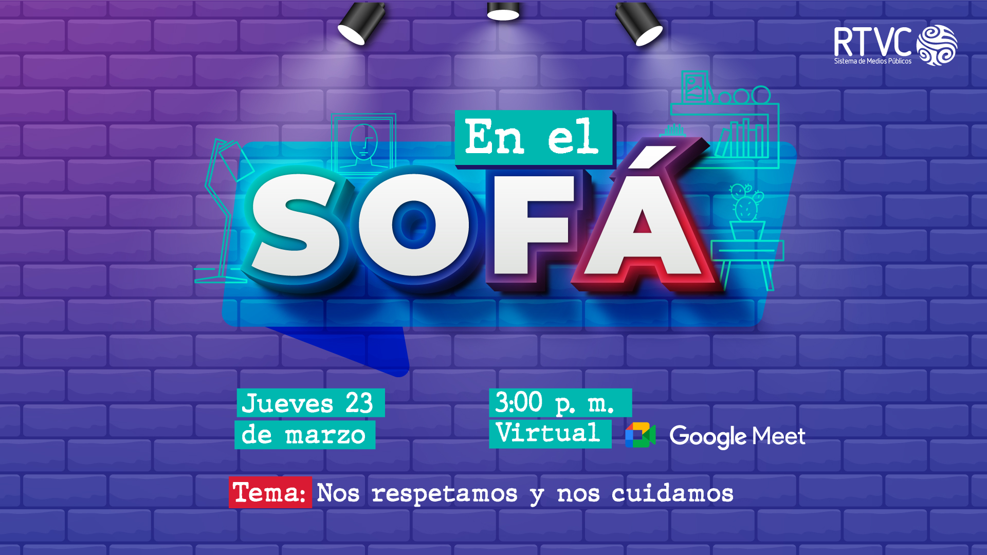RTVC, a través de la Coordinación de Gestión de Comunicaciones, se complace en invitarte a nuestro primer ‘En el Sofá’ de 2023, que se desarrollará este jueves 23 de marzo a las 3:00 p. m. a través de la aplicación Google Meet.
