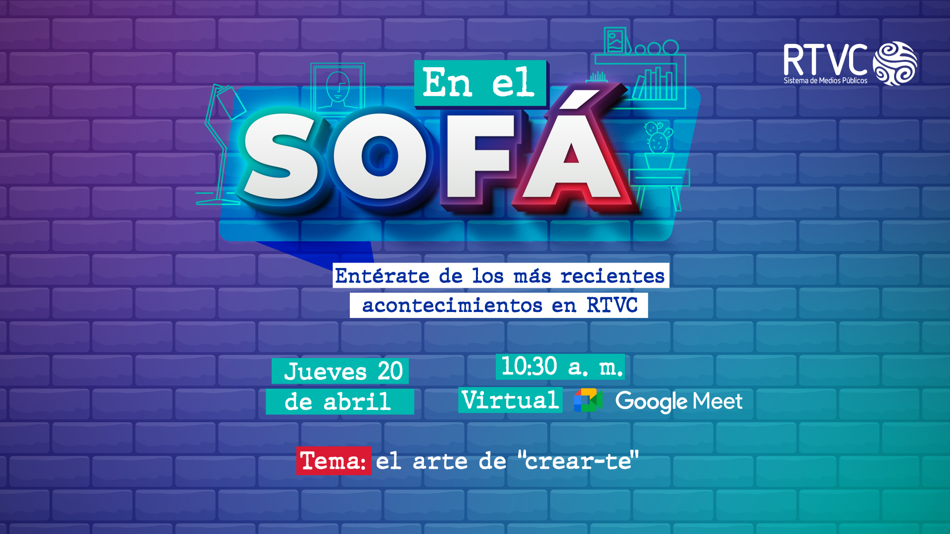 Recordemos que En el Sofá es un formato en vivo que ha contado con invitados especiales del Área de Planeación, Área de Convergencia, Centro de Inteligencia y Monitoreo de Audiencias – CIMA, y del Archivo Sonoro de Señal Memoria, quienes han compartido sus lanzamientos, proyectos y hechos más relevantes en RTVC.