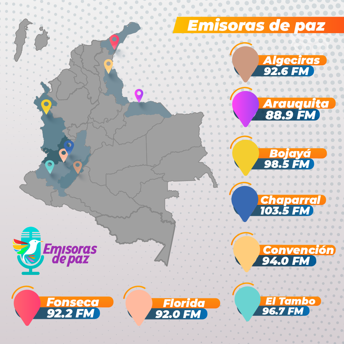 Por medio de una amena charla liderada por nuestra presentadora Jimena Cortés, conoceremos como a través de la palabra las comunidades han avanzado hacia la reconciliación y la transformación de sus territorios por medio de las emisoras las cuales están ubicadas en algunas de las zonas más impactadas por el conflicto armado.