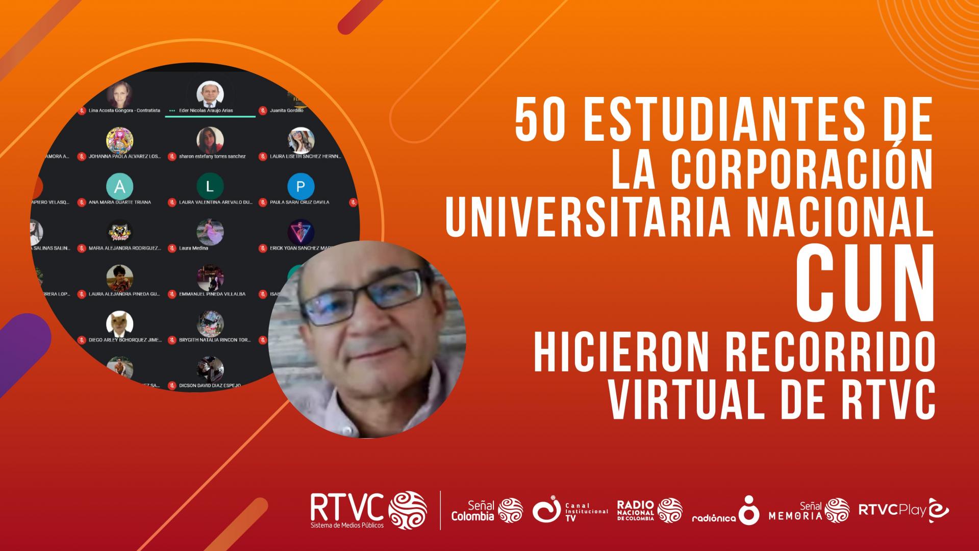 El pasado viernes 23 de marzo, RTVC Sistema de Medios Públicos abrió su ventana virtual a 50 estudiantes de la Corporación Universitaria Nacional CUN, quienes en compañía de su profesor Johann Benavides, tuvieron la oportunidad de conocer el escenario de la radio y la televisión pública al tiempo que se enteraron de cómo las nuevas tecnologías permiten realizar contenidos de alta calidad con nuevos dispositivos.