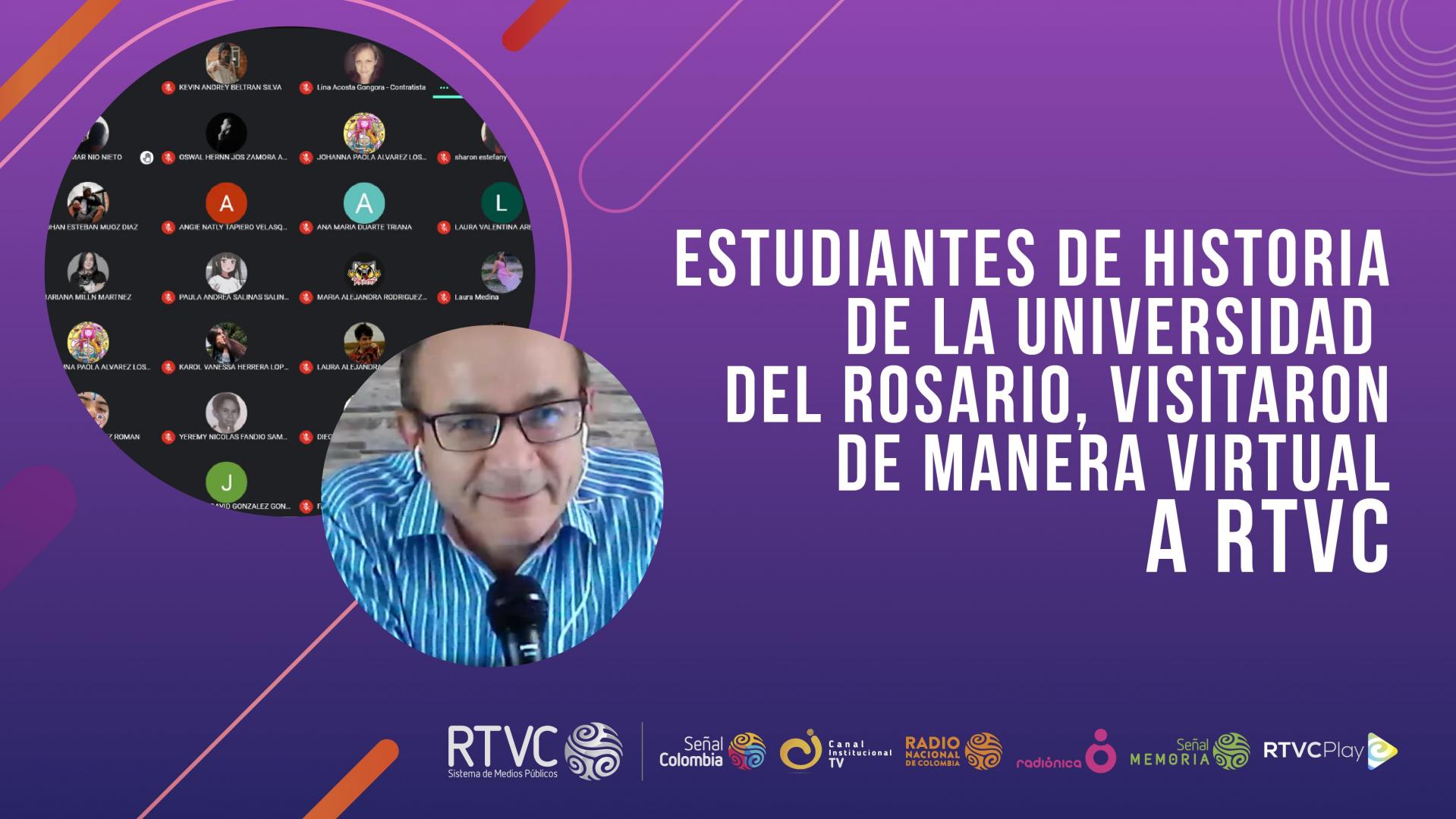 El miércoles 14 de abril estudiantes de Antropología, Historia y Periodismo de la Universidad del Rosario, participaron de una visita virtual en el escenario de RTVC, donde se nutrieron de información relacionada con Señal Memoria y todos los procesos que permiten la preservación de documentos históricos que dan cuenta de aconteceres relevantes en la vida de la nación.