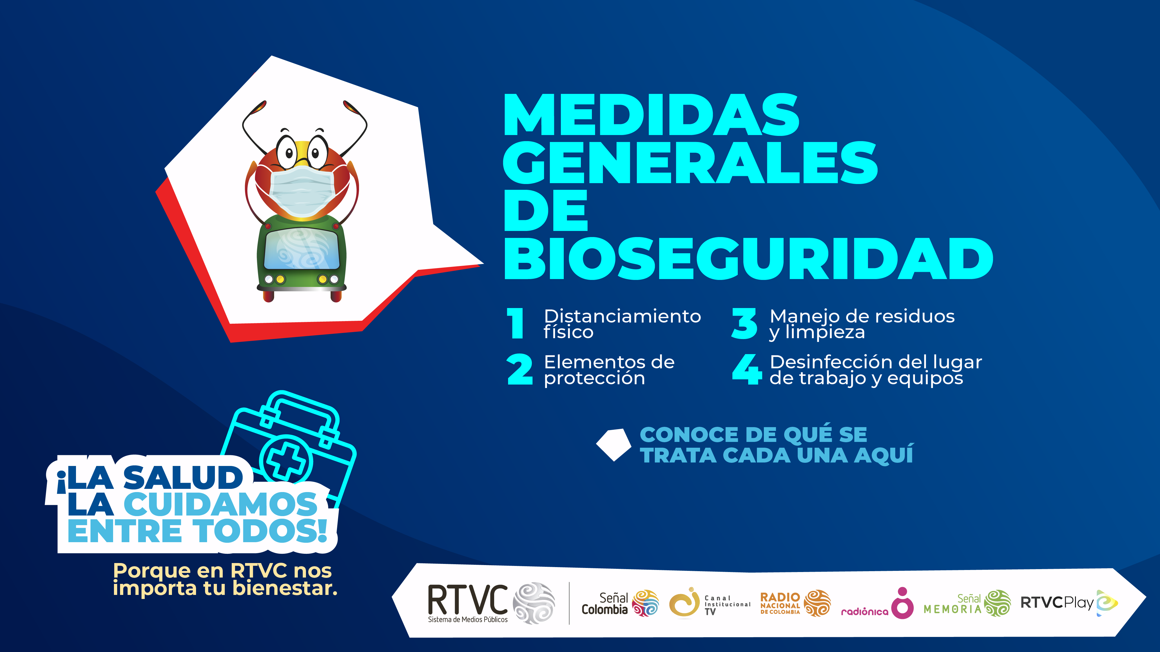 Para conocer más información de cada una de las medidas generales del PROTOCOLO DE BIOSEGURIDAD DE RTVC, INGRESA AQUÍ.