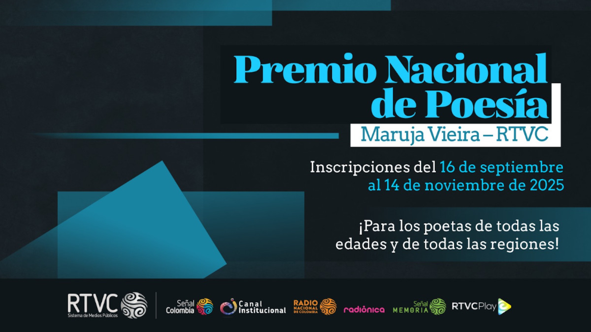 Solo hasta el viernes 14 de noviembre estarán abiertas las inscripciones para el Premio Nacional de Poesía Maruja Vieira – RTVC, en el cual podrán participar escritores de nacionalidad colombiana, sin límite de edad.