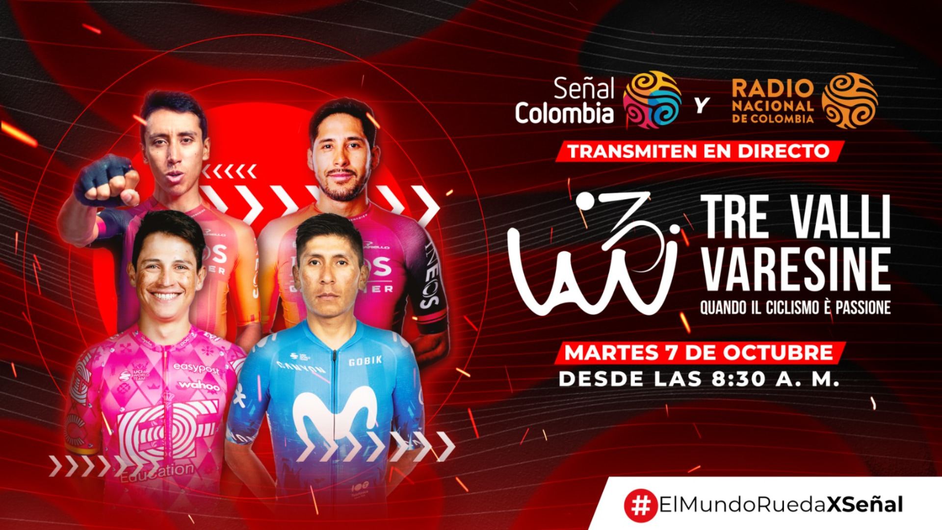 Este martes 7 de octubre, desde las 8:30 a. m., en medio de la emisión de El Calentao, viva la emoción del ciclismo internacional con la clásica italiana Tre Valli Varesine 2025. Una competencia de alto nivel que forma parte del prestigioso Grande Trittico Lombardo, y que la gente podrá disfrutar en directo a través del Sistema de Medios Públicos.